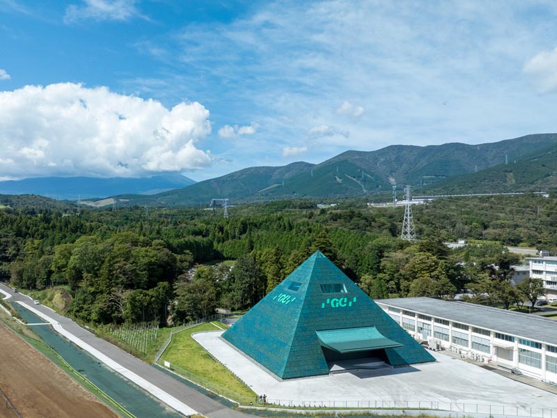 The request was to design a symbolic factory to commemorate the company's 100th anniversary, located on a site next to the Second Tomei Expressway, which is currently under construction. The design was required to be visible from highway vehicles, to represent a factory producing high-tech glass for dental materials, and to have a viewing space with Mount Fuji at the top. Due to the glass manufacturing process, the floor area of the lower floors was large, while the viewing space was small, and the pyramidal shape was chosen to contrast with the view of Mount Fuji. Since the plant will generate electricity to cover almost all of the electricity used in the plant, it was confirmed that a pyramidal shape would also enable it to generate electricity on the north side, and so the entire surface could be covered with solar panels.