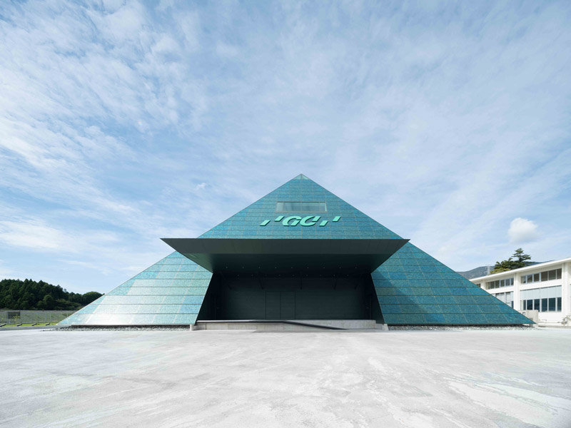 建設中の第二東名高速道路脇の敷地に、会社創立100年を記念したシンボリックな工場の設計の依頼であった。高速道路を通る車からも目立ち、歯科材料用のハイテク・ガラスの工場らしいもの、更にトップに富士山の展望スペースを設けることが要求された。ガラスの製造工程により下階の面積は大きく、展望スペースは小さく、また富士山とのコントラストとなるようにピラミッド形が導き出された。工場で使われる電力をほぼ賄う発電をするため、ピラミッド状だと北面でも発電できることが確認でき、全面をソーラーパネルで被うことができた。